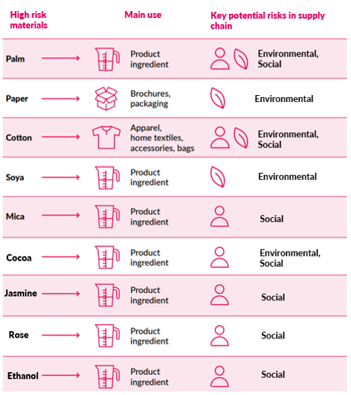 As part of our sustainability journey, we recognize that some of the materials we use carry significant social or environmental risks. Therefore, we require our suppliers to provide full traceability to the country of origin for feedstock cultivation or mining.