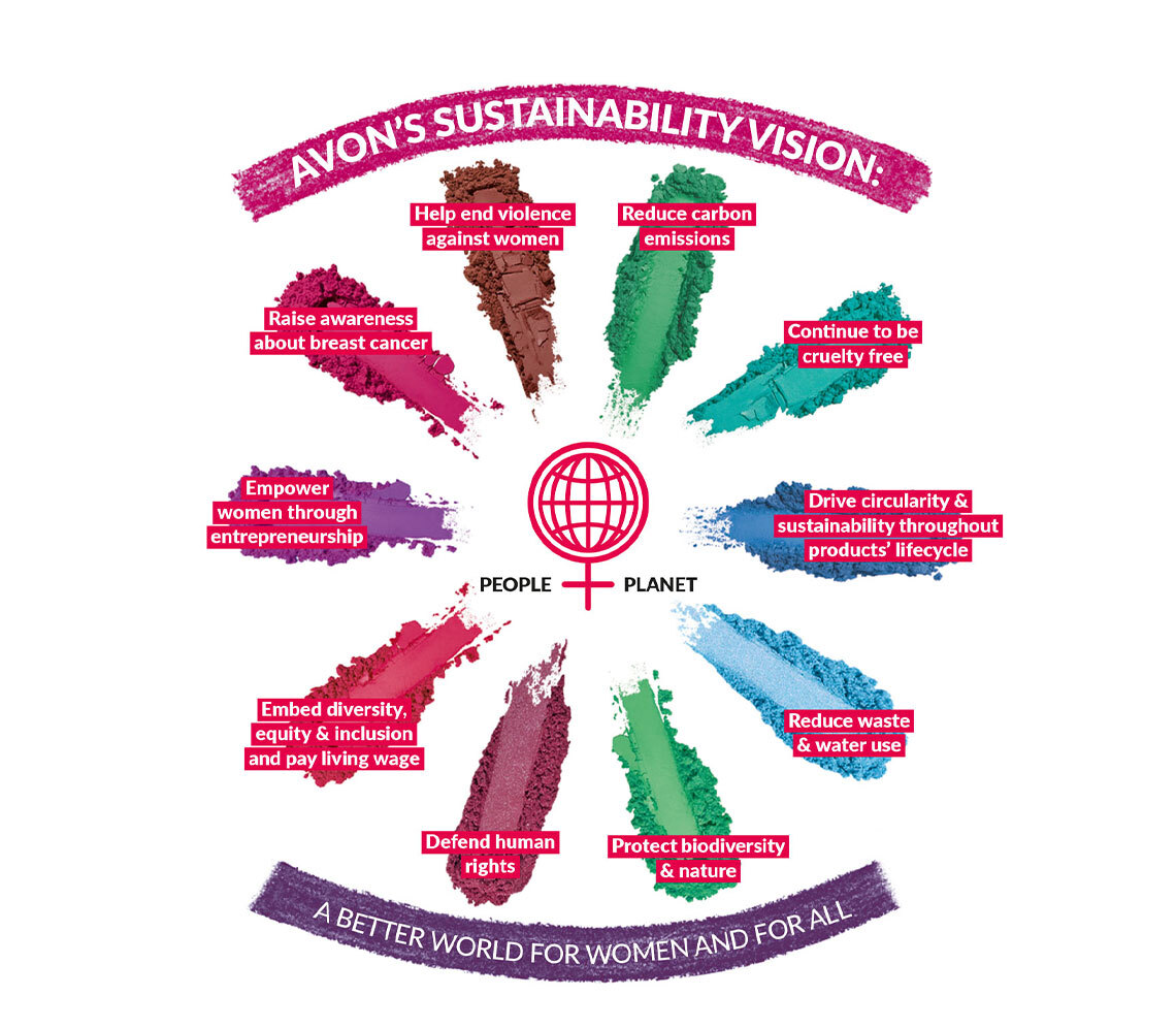 Avon’s purpose is to create a better world for all. We aim to achieve that by being a socially and environmentally responsible business. Our core business strategy is designed to ensure that we protect our planet, invest in people and make our products more sustainable.