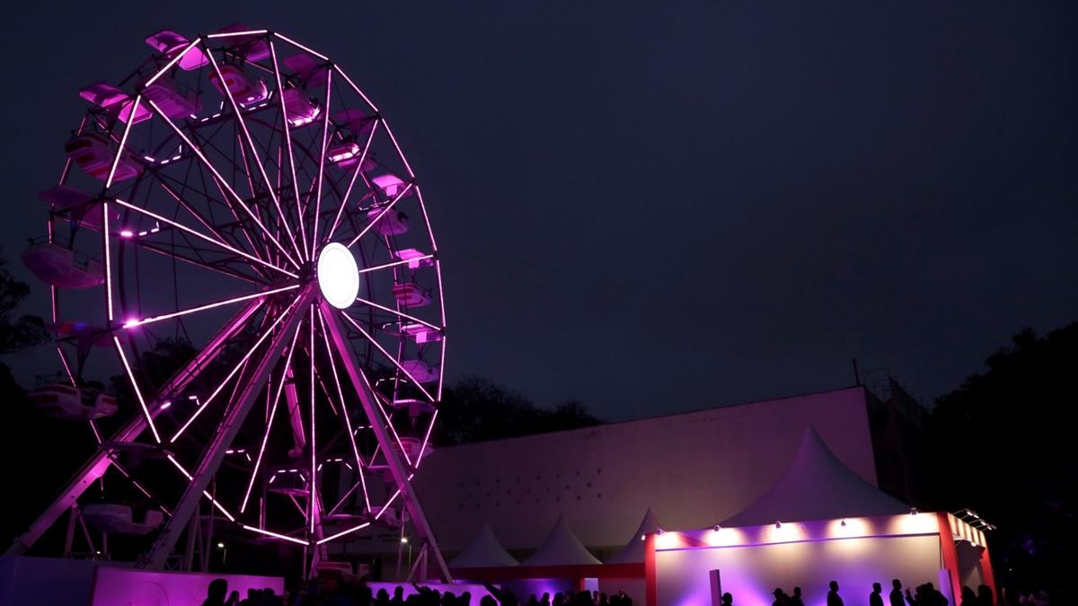 This year, Brazil broke its breast cancer awareness month record with 94,000 visitors attending its annual pink ferris wheel, Giro Pela Vida (A Spin for Life) event in just six days. During the country's Breast Cancer Awareness Month, they promoted the campaign "Together to have fun, Together to take care of each other." 220,000 people across the country were involved in some part of the movement, whether they were one of the 460 who received mammograms, in the audience of 45,000 at the open air movie, or part of the walking mobs which attracted more than 140,000 people.